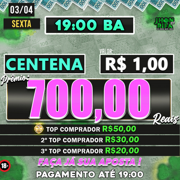 Quem comprar mais cotas, 1ºR$50 2ºR$30 3ºR$20