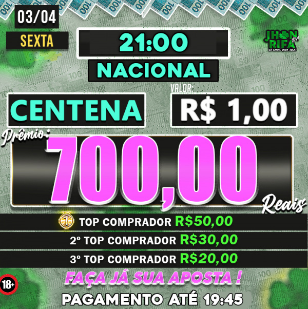 Quem comprar mais cotas, 1ºR$50 2ºR$30 3ºR$20