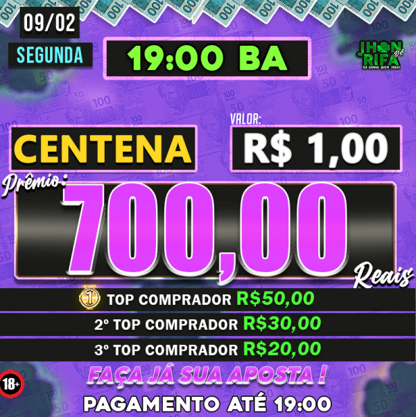 Quem comprar mais cotas, 1ºR$50 2ºR$30 3ºR$20