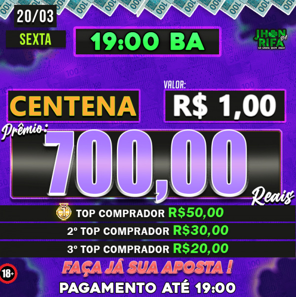 Sorteio: 20/03/2026 às 19:00