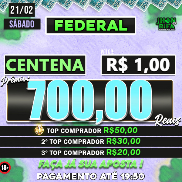 Quem comprar mais cotas, 1ºR$50 2ºR$30 3ºR$20