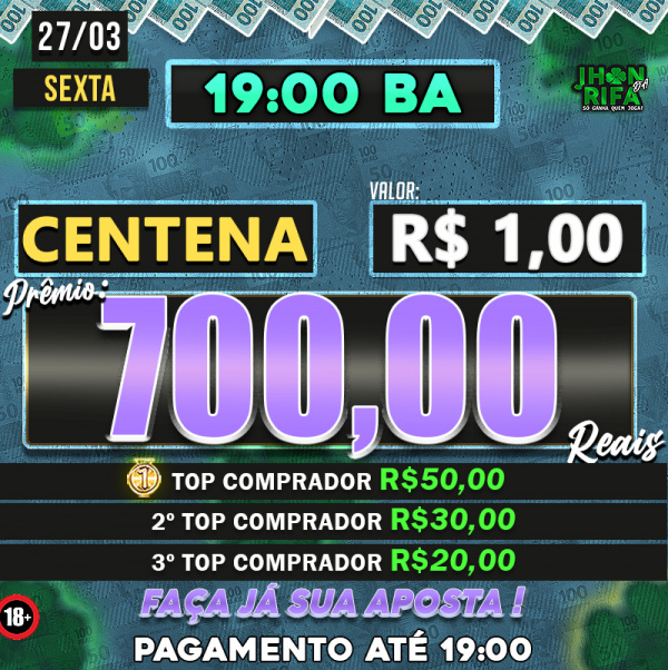 Quem comprar mais cotas, 1ºR$50 2ºR$30 3ºR$20