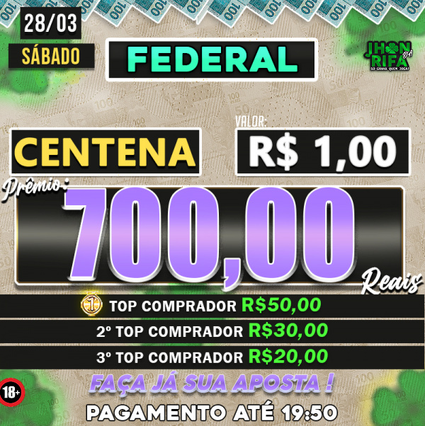Quem comprar mais cotas, 1ºR$50 2ºR$30 3ºR$20