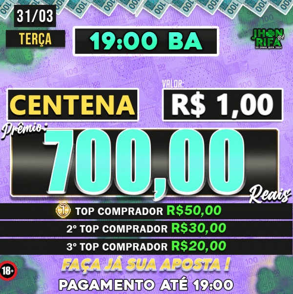 Quem comprar mais cotas, 1ºR$50 2ºR$30 3ºR$20