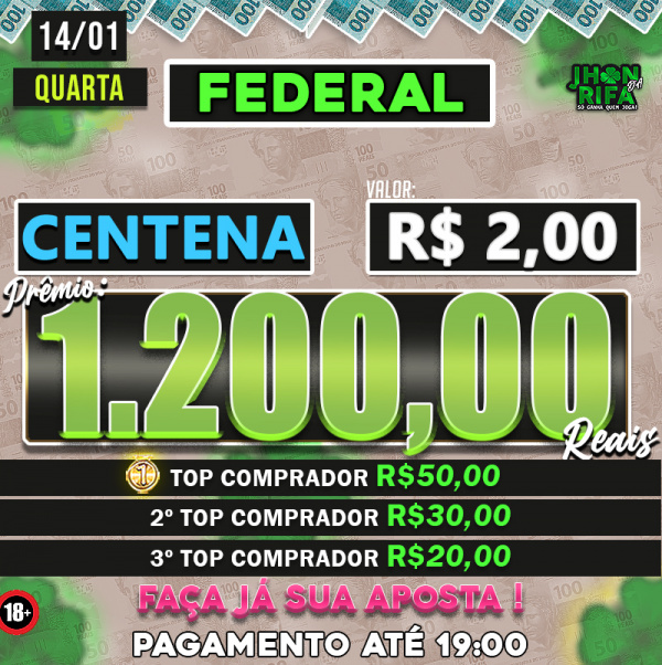 Quem comprar mais cotas, 1ºR$50 2ºR$30 3ºR$20