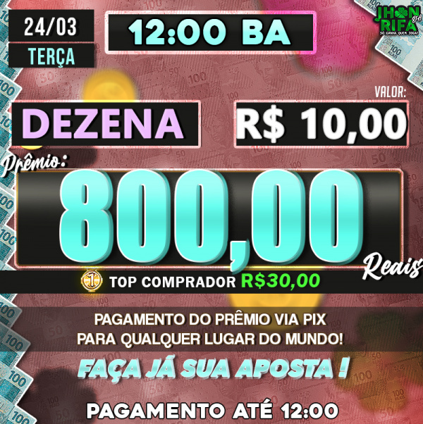 Sorteio: 24/03/2026 às 12:00