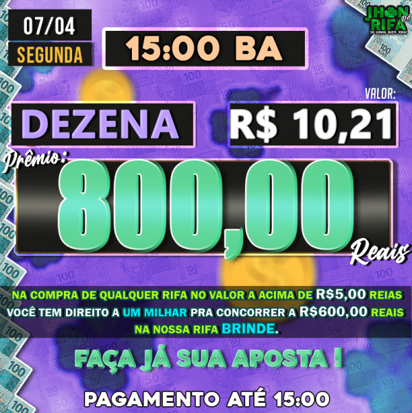 Sorteio: 07/04/2025 às 15:00