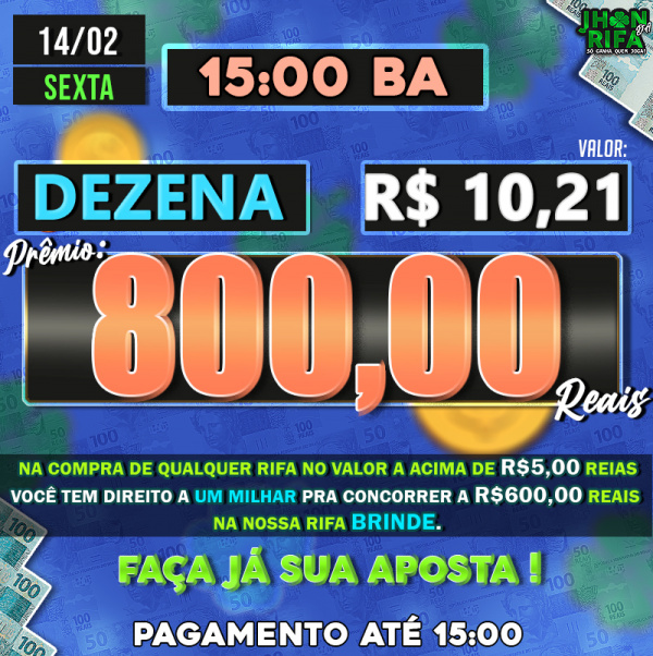 Sorteio: 14/02/2025 às 15:00