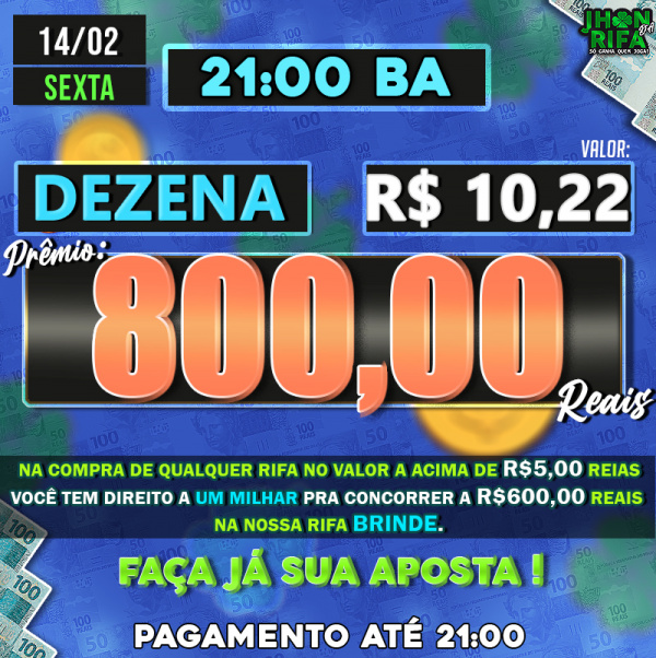 Sorteio: 14/02/2025 às 21:00
