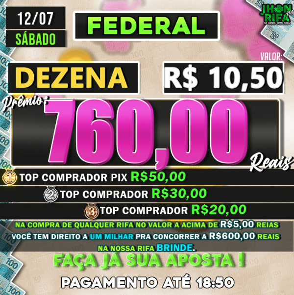 TOP 1ºR$50,00 /TOP 2º R$30,00 /TOP 3ºR$20,00
