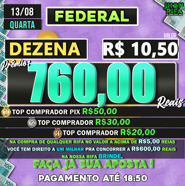 TOP 1ºR$50,00 /TOP 2º R$30,00 /TOP 3ºR$20,00