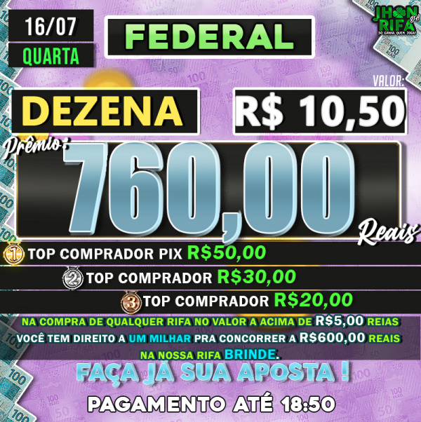 TOP 1ºR$50,00 /TOP 2º R$30,00 /TOP 3ºR$20,00