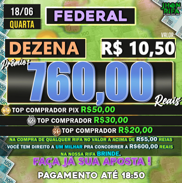 TOP 1ºR$50,00 /TOP 2º R$30,00 /TOP 3ºR$20,00