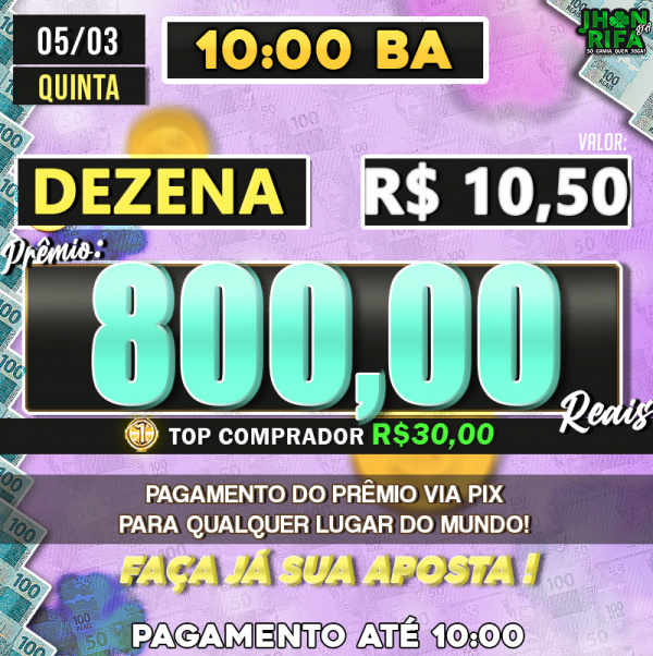 Sorteio: 05/03/2026 às 10:00