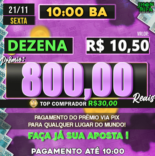 Sorteio: 21/11/2025 às 10:00