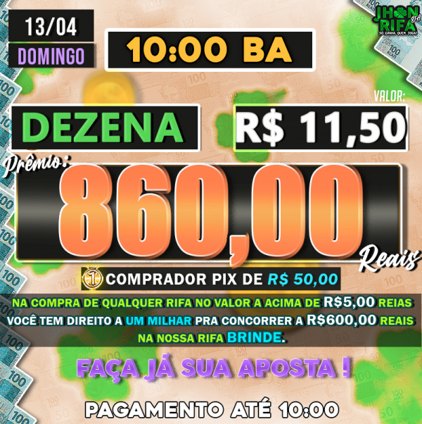 Sorteio: 13/04/2025 às 10:00