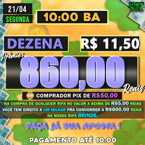 Sorteio: 21/04/2025 às 10:00