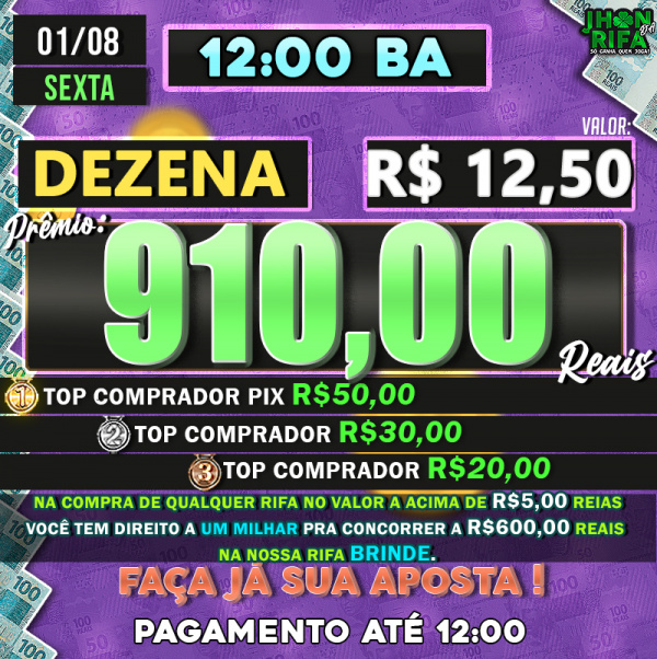 TOP 1ºR$50,00 /TOP 2º R$30,00 /TOP 3ºR$20,00
