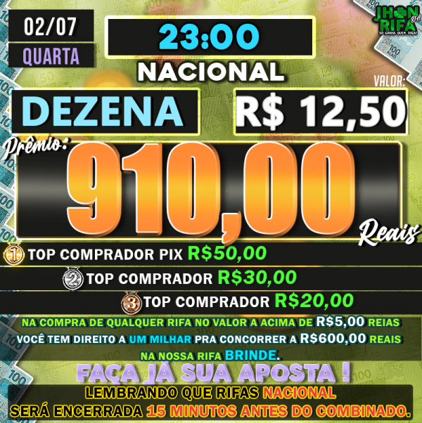 TOP 1ºR$50,00 /TOP 2º R$30,00 /TOP 3ºR$20,00