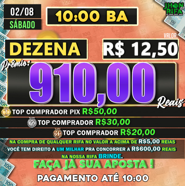 TOP 1ºR$50,00 /TOP 2º R$30,00 /TOP 3ºR$20,00