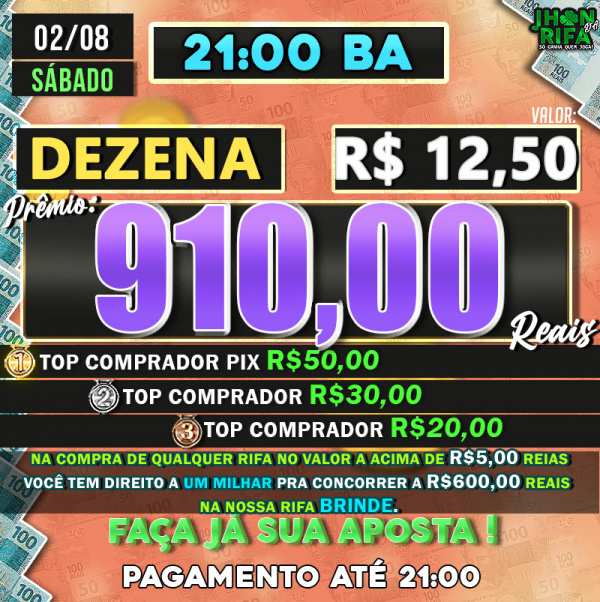 TOP 1ºR$50,00 /TOP 2º R$30,00 /TOP 3ºR$20,00