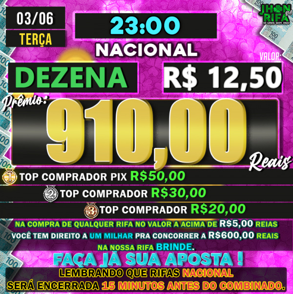 TOP 1ºR$50,00 /TOP 2º R$30,00 /TOP 3ºR$20,00