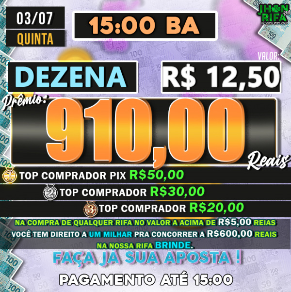 TOP 1ºR$50,00 /TOP 2º R$30,00 /TOP 3ºR$20,00