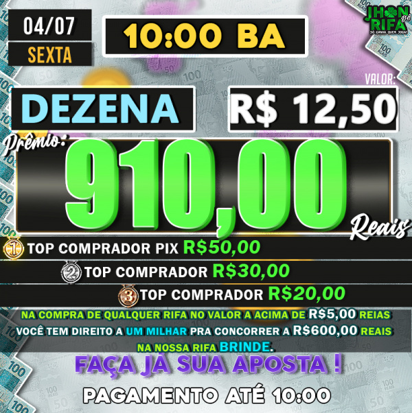 TOP 1ºR$50,00 /TOP 2º R$30,00 /TOP 3ºR$20,00
