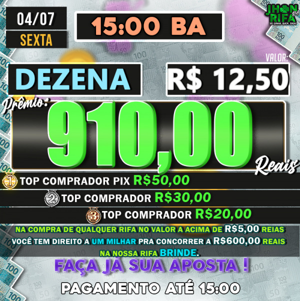 TOP 1ºR$50,00 /TOP 2º R$30,00 /TOP 3ºR$20,00