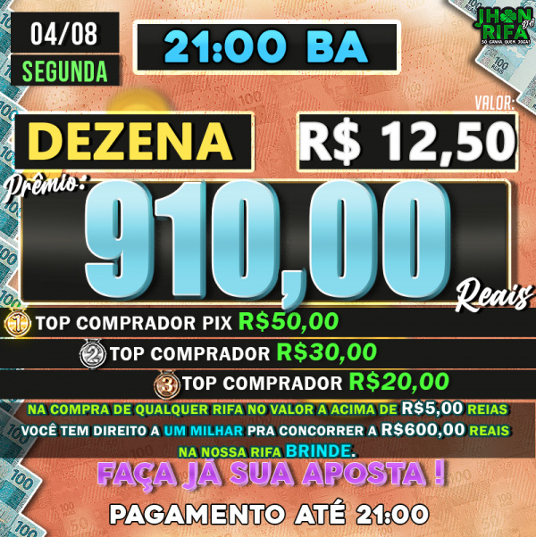 TOP 1ºR$50,00 /TOP 2º R$30,00 /TOP 3ºR$20,00