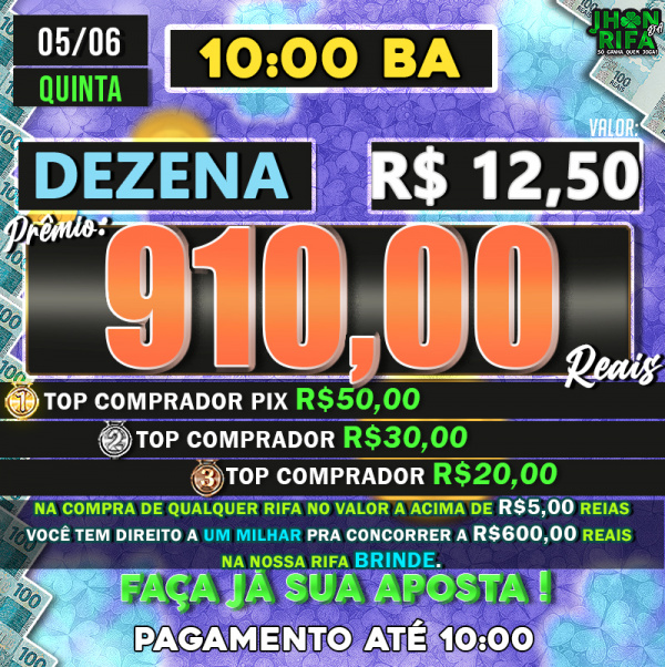 TOP 1ºR$50,00 /TOP 2º R$30,00 /TOP 3ºR$20,00