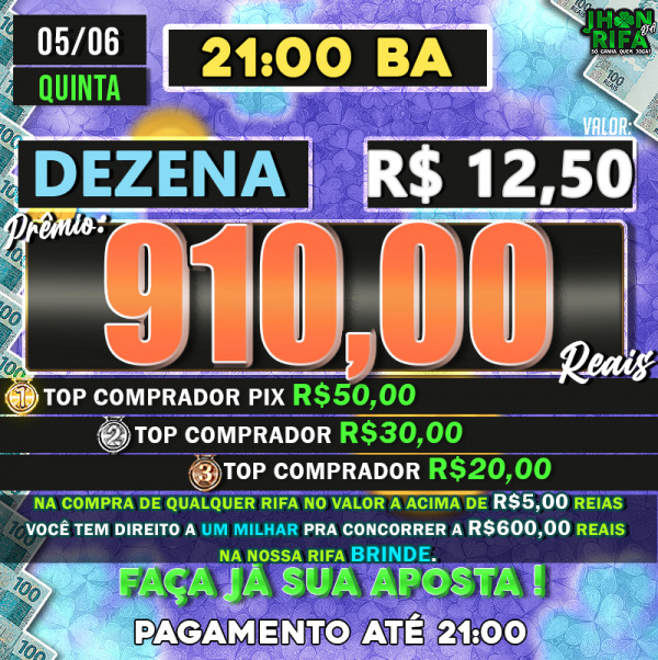 TOP 1ºR$50,00 /TOP 2º R$30,00 /TOP 3ºR$20,00