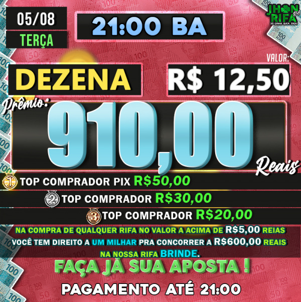 TOP 1ºR$50,00 /TOP 2º R$30,00 /TOP 3ºR$20,00