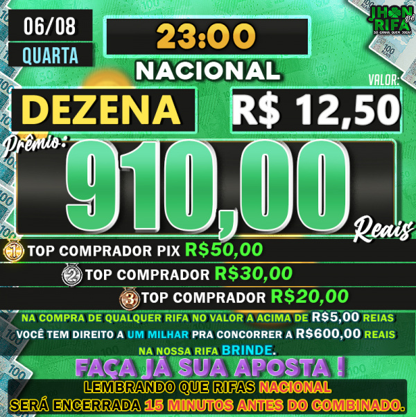 TOP 1ºR$50,00 /TOP 2º R$30,00 /TOP 3ºR$20,00
