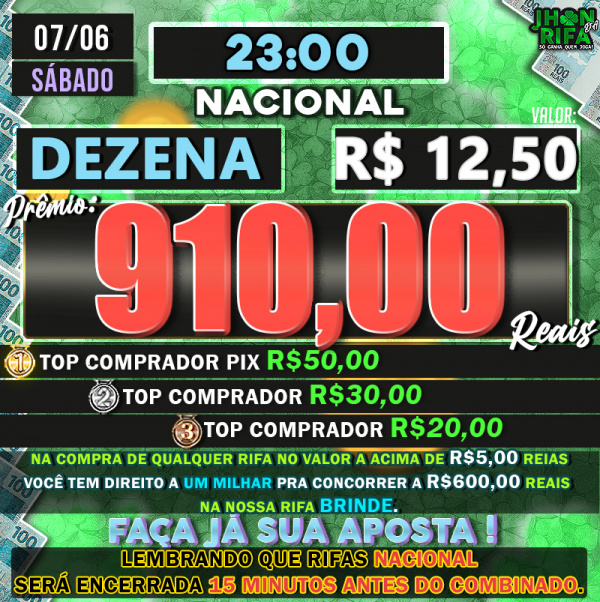 TOP 1ºR$50,00 /TOP 2º R$30,00 /TOP 3ºR$20,00