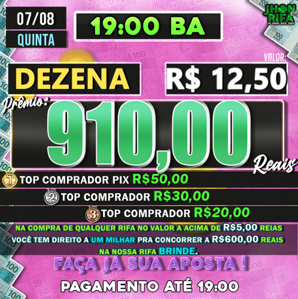 TOP 1ºR$50,00 /TOP 2º R$30,00 /TOP 3ºR$20,00