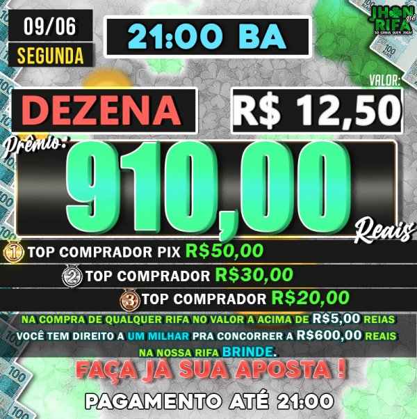 TOP 1ºR$50,00 /TOP 2º R$30,00 /TOP 3ºR$20,00