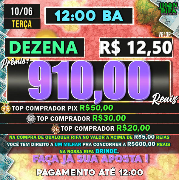 TOP 1ºR$50,00 /TOP 2º R$30,00 /TOP 3ºR$20,00