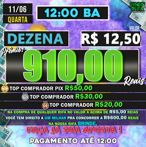 TOP 1ºR$50,00 /TOP 2º R$30,00 /TOP 3ºR$20,00