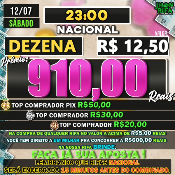 TOP 1ºR$50,00 /TOP 2º R$30,00 /TOP 3ºR$20,00