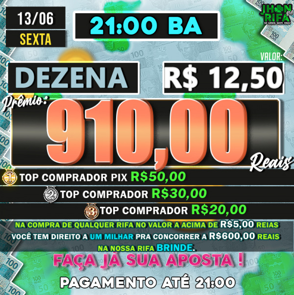 TOP 1ºR$50,00 /TOP 2º R$30,00 /TOP 3ºR$20,00