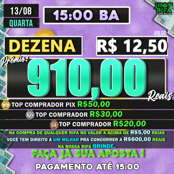 TOP 1ºR$50,00 /TOP 2º R$30,00 /TOP 3ºR$20,00