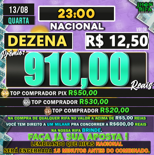 TOP 1ºR$50,00 /TOP 2º R$30,00 /TOP 3ºR$20,00