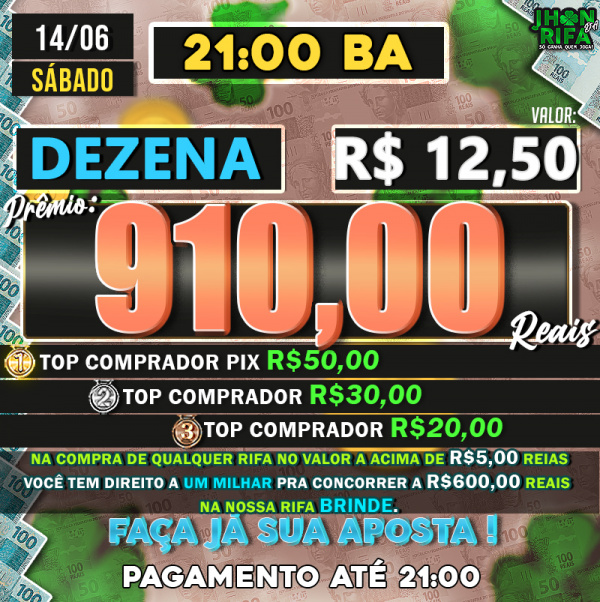 TOP 1ºR$50,00 /TOP 2º R$30,00 /TOP 3ºR$20,00