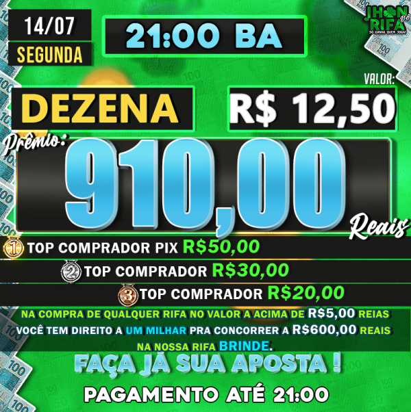 TOP 1ºR$50,00 /TOP 2º R$30,00 /TOP 3ºR$20,00