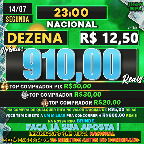 TOP 1ºR$50,00 /TOP 2º R$30,00 /TOP 3ºR$20,00