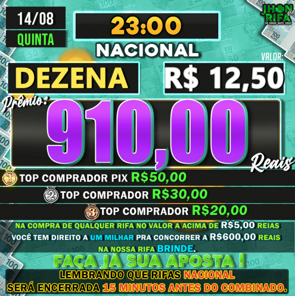 TOP 1ºR$50,00 /TOP 2º R$30,00 /TOP 3ºR$20,00