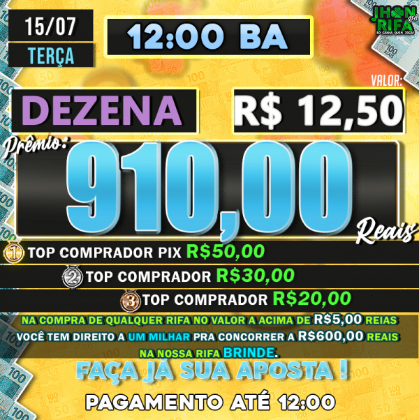 TOP 1ºR$50,00 /TOP 2º R$30,00 /TOP 3ºR$20,00