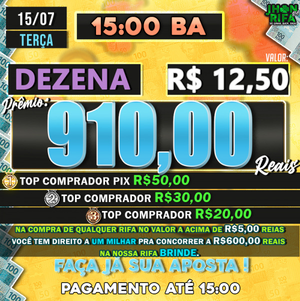 TOP 1ºR$50,00 /TOP 2º R$30,00 /TOP 3ºR$20,00