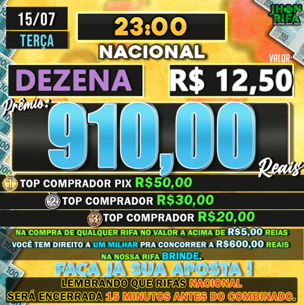 TOP 1ºR$50,00 /TOP 2º R$30,00 /TOP 3ºR$20,00